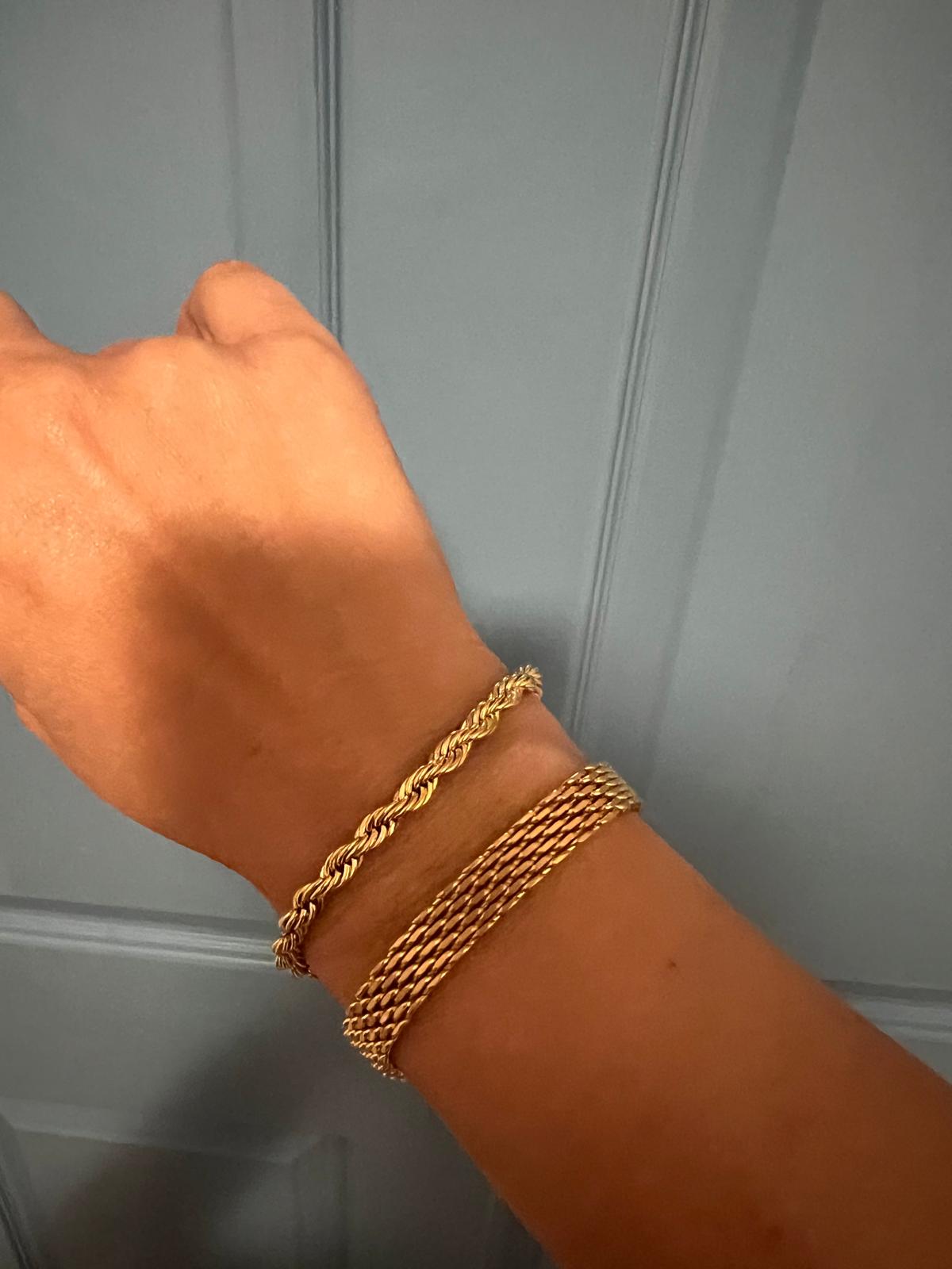 • The rope chain adds a subtle twist and texture; the mesh chain delivers smooth, contemporary shine — together they create a balanced, curated wrist look.