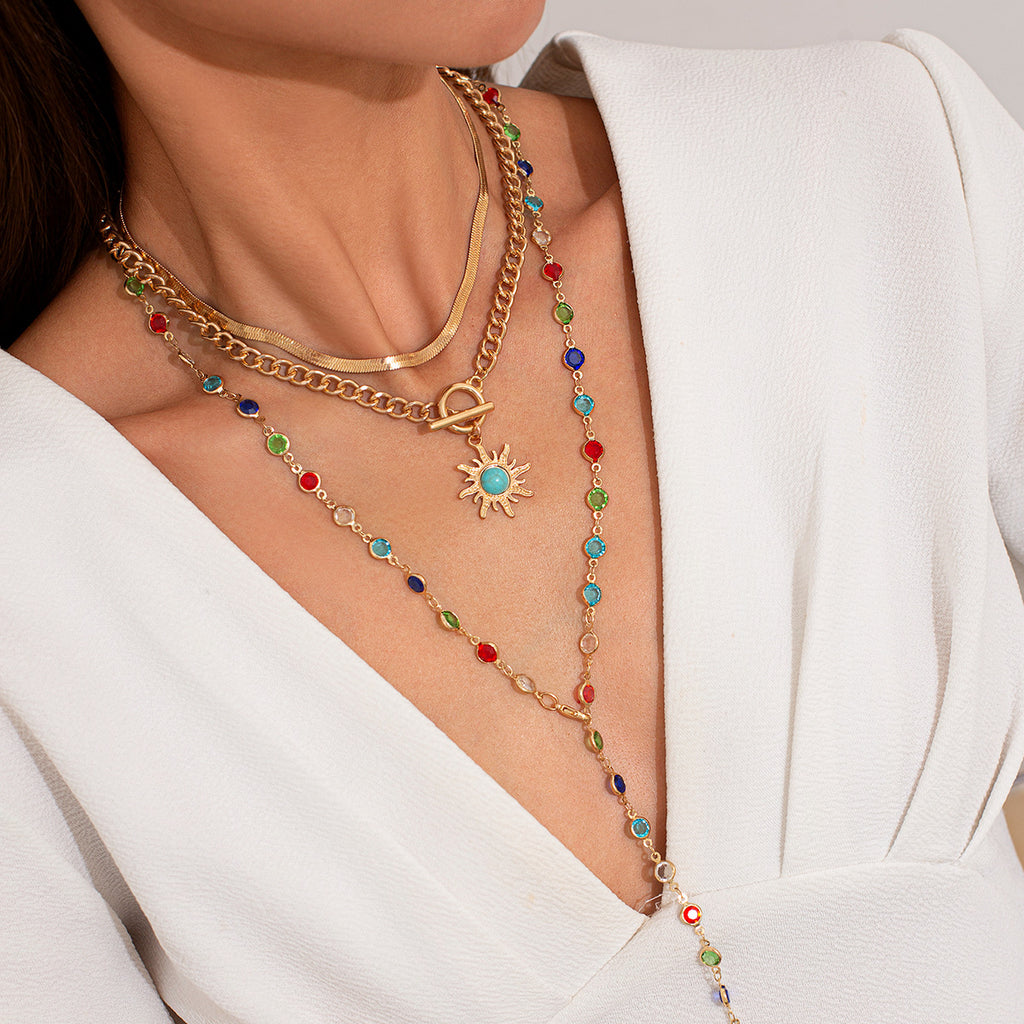 Add a vibrant touch to your ensemble with the All Time Color Necklace. This vintage-inspired pieces features multicolored rhinestones set in 18K gold-plated stainless steel, offering a timeless yet playful aesthetic. Perfectly layered for you.