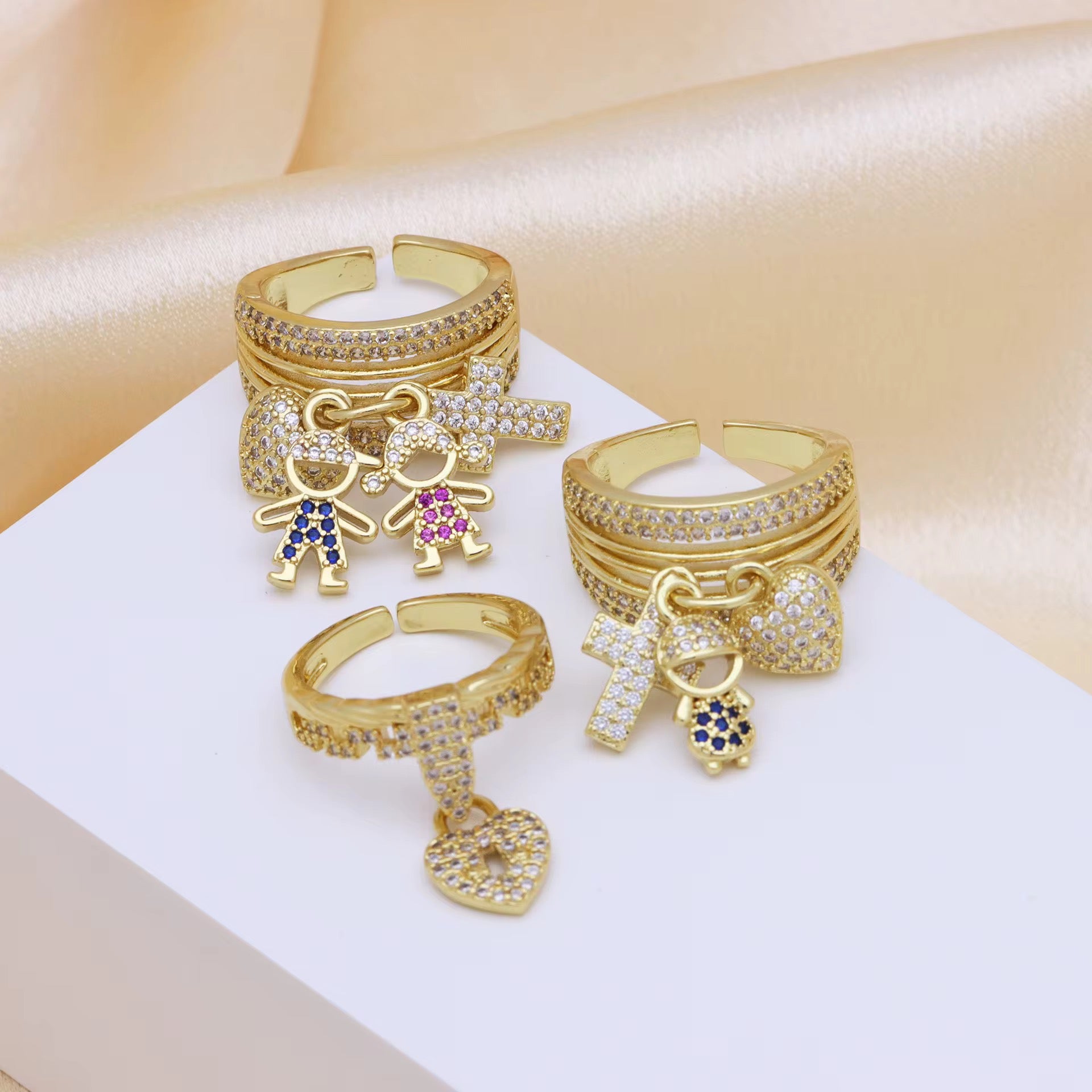 18k Gold Plated - Zirconia dangle ring either lock pendant.
