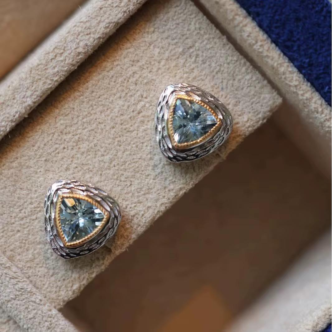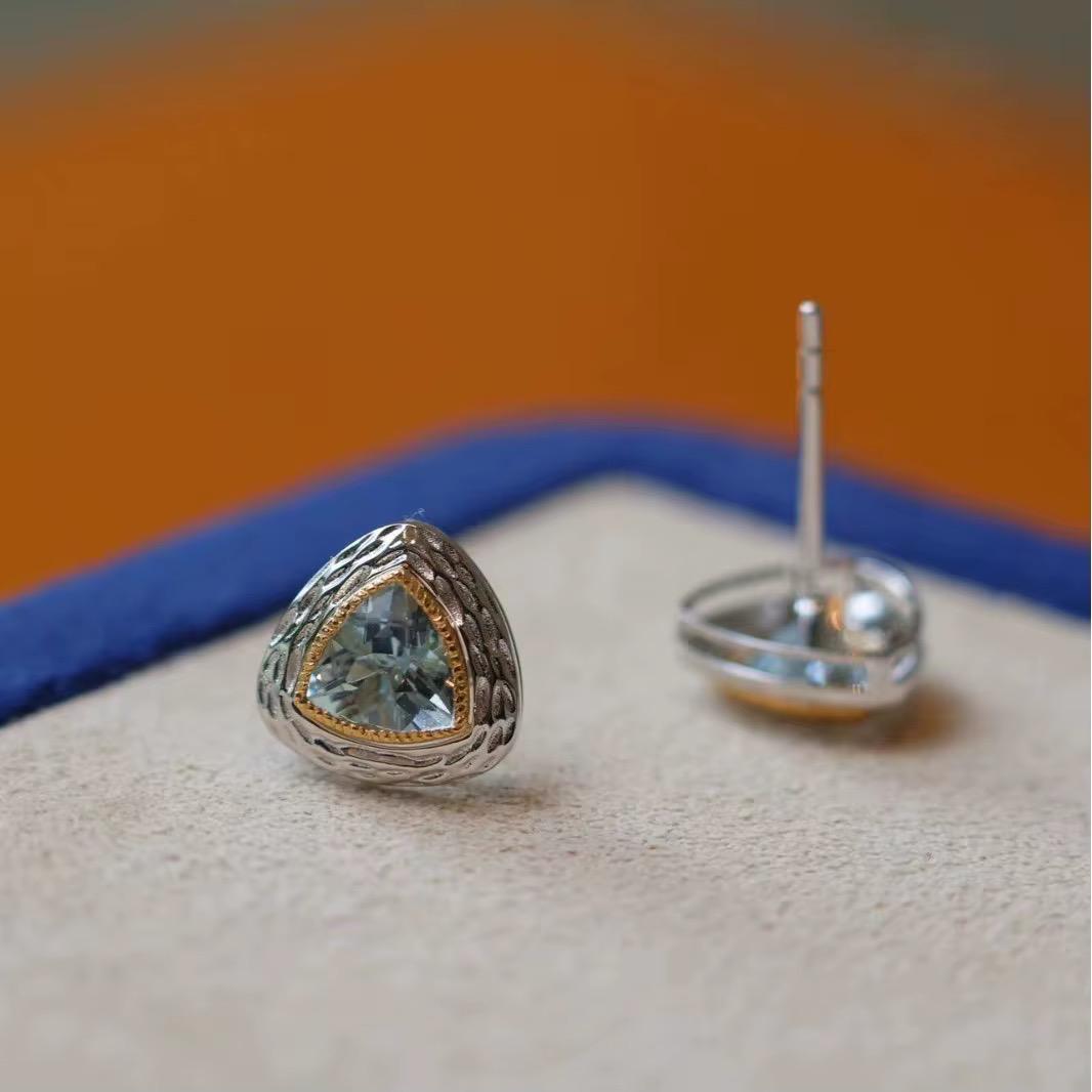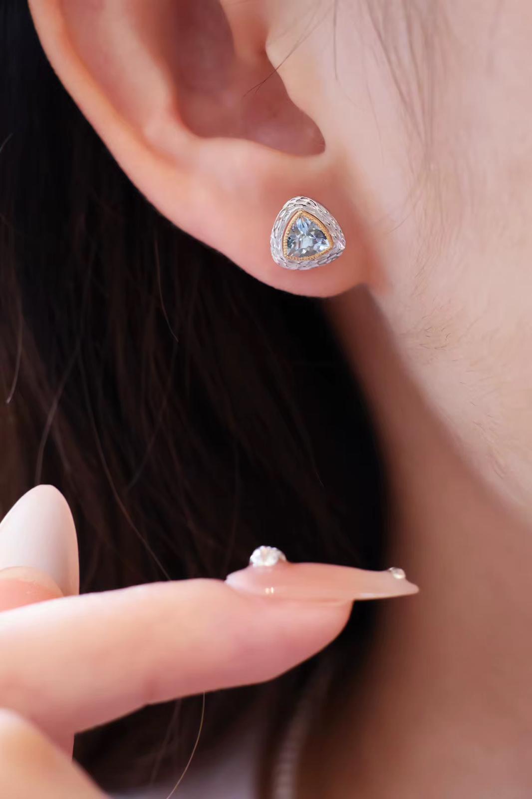 Elevate your style with Shans London’s Aurelia Aquamarine Stud Earrings, a pair of rounded triangle-shaped studs designed for modern sophistication.
