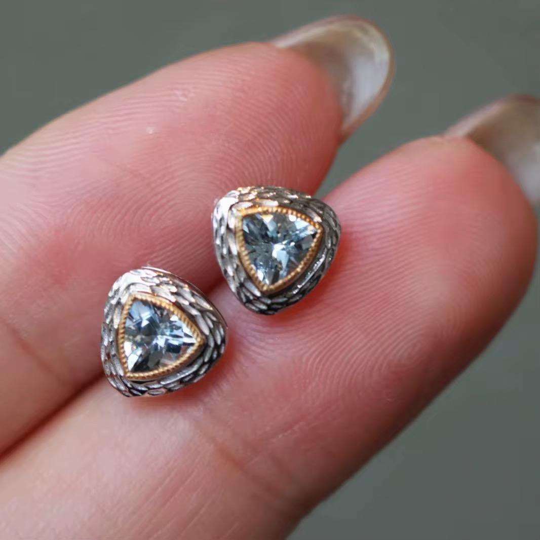 Aurelia Aquamarine Stud Earrings - Sterling Silver - Two Tone Gold & Silver