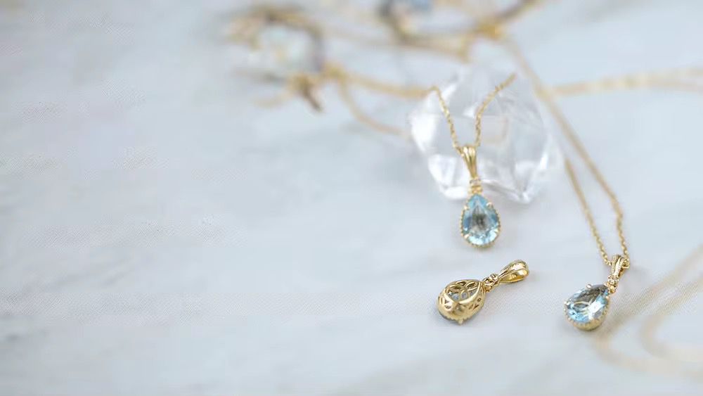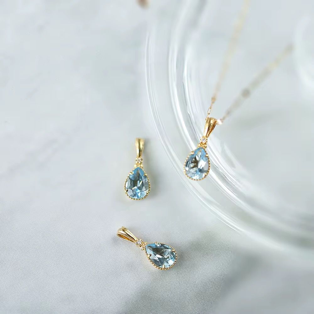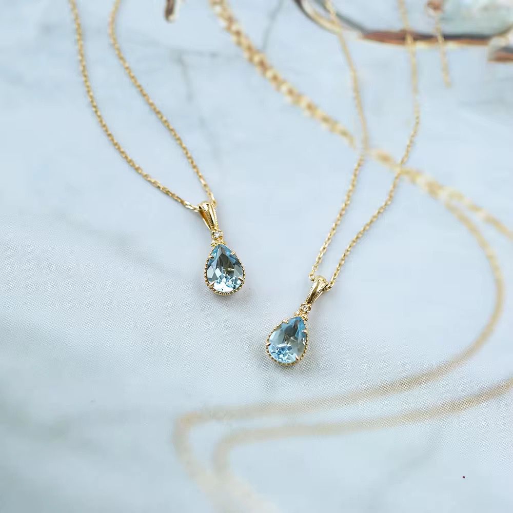 • Water drop / sea drop pendant with channel-set aquamarine stone